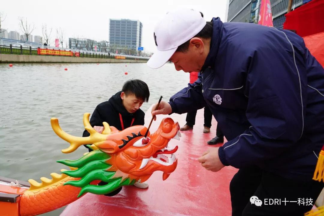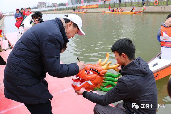 同時(shí)龍舟賽預(yù)賽也如火如荼的進(jìn)行。上海華力、十一科技、上海建工等共 8 只隊(duì)伍參加了本次龍舟賽。十一科技龍舟隊(duì)順利進(jìn)入決賽。隨后,決賽前的龍舟點(diǎn)睛儀式正式舉行。張素心、趙振元同志分別親自為華力隊(duì)、十一科技龍舟隊(duì)的戰(zhàn)船點(diǎn)睛。大家激動(dòng)不已,斗志昂揚(yáng)。