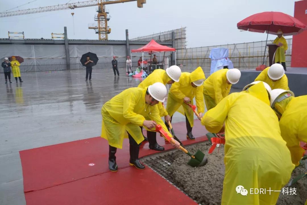 2019年6月19日上午,十一科技總承包的中芯紹興MEMS和功率器件芯片制造及封裝測試生產基地項目隆重舉行主體工程封頂儀式。紹興市委書記馬衛光、紹興市市委秘書長陸維、紹興市副市長孫哲君、中芯國際CFO高永崗、中芯紹興董事長丁國興、中芯紹興總經理趙奇、十一科技董事長、黨委書記趙振元、高級副院長白焰等領導出席儀式。中芯國際CFO高永崗、中芯紹興總經理趙奇先后致辭,對十一科技、各參建方及紹興市各級市政領導對項目的大力支持和辛勤付出表示感謝。在儀式上,趙振元與馬衛光書記、高永崗CFO、趙奇總經理等領導親切交談,并與出席儀式的領導共同揮鏟為主體廠房的結構封頂完成最后一方混凝土的澆筑。