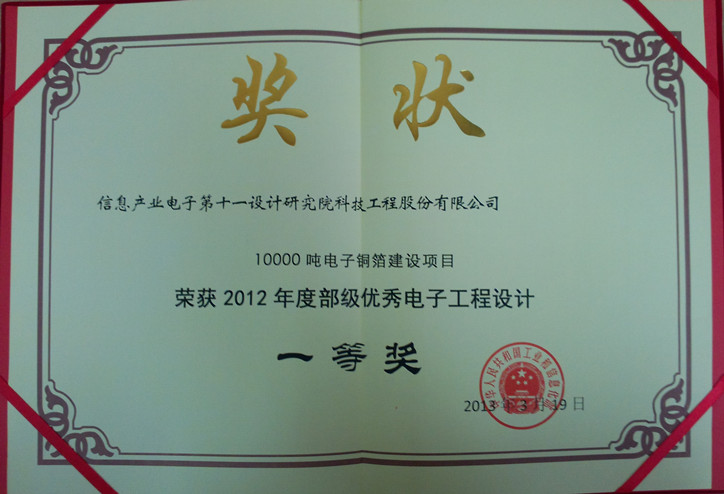 10000噸電子銅箔部級一等獎